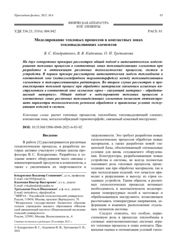 - Кондратенко В. С., Кадомкин В. В., Третьякова О. Н. // Материалы XXII Международная конференция по Вычислительной механике и современным прикладным программным системам (ВМСППС’2021). (4–13 сентября 2021 г. Алушта, Крым).