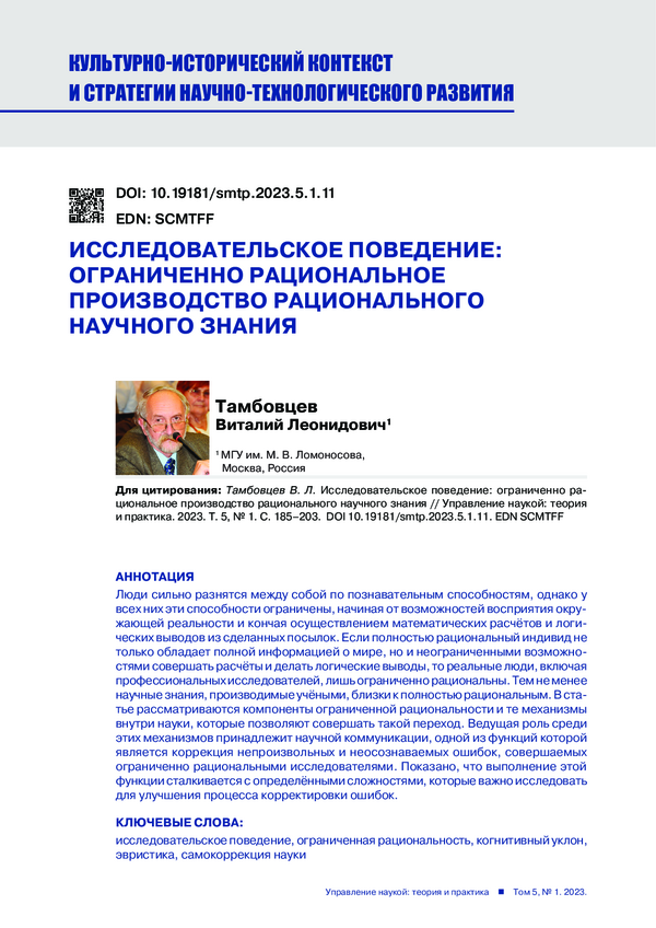 Люди сильно разнятся между собой по познавательным способностям, однако у всех них эти способности ограничены, начиная от возможностей восприятия окружающей реальности и кончая осуществлением математических расчётов и логических выводов из сделанных посылок. Если полностью рациональный индивид не только обладает полной информацией о мире, но и неограниченными возможностями совершать расчёты и делать логические выводы, то реальные люди, включая профессиональных исследователей, лишь ограниченно рациональны. Тем не менее научные знания, производимые учёными, близки к полностью рациональным. В статье рассматриваются компоненты ограниченной рациональности и те механизмы внутри науки, которые позволяют совершать такой переход. Ведущая роль среди этих механизмов принадлежит научной коммуникации, одной из функций которой является коррекция непроизвольных и неосознаваемых ошибок, совершаемых ограниченно рациональными исследователями. Показано, что выполнение этой функции сталкивается с определёнными сложностями, которые важно исследовать для улучшения процесса корректировки ошибок.