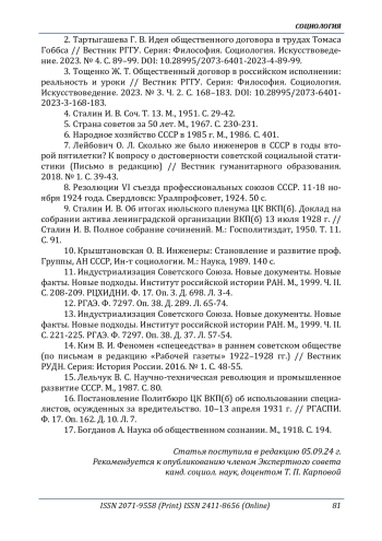 7. Лейбович О. Л. Сколько же было инженеров в СССР в годы второй пятилетки? К вопросу о достоверности советской социальной статистики (Письмо в редакцию) // Вестник гуманитарного образования. 2018. № 1. С. 39-43. EDN: VMCGVC