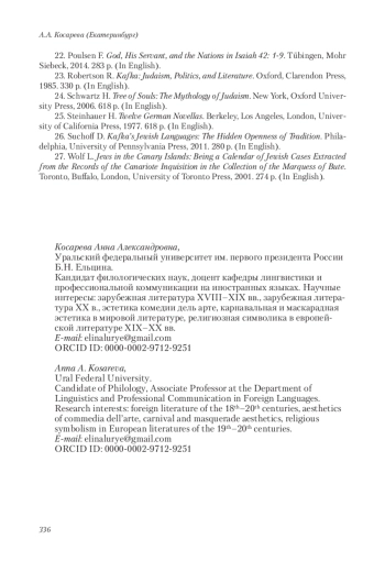 15. Horwitz R. Kafka and the Crisis in Jewish Religious Thought // Modern Judaism. 1995. Vol. 15. № 1. Februar. P. 21-33. EDN: JIUKIJ