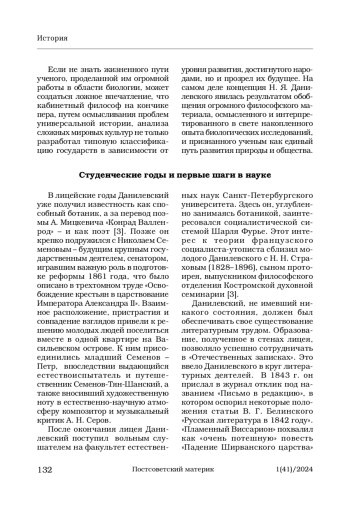 15. Пивоваров Ю. С. Николай Данилевский в русской культуре и мировой науке // Мир России. Том I. № 1. 1992. Семенов-Тян-Шанский П.П. Воспоминания. Т. 1: Детство и юность. 1827-1855. М.: Кучково поле. 2019.