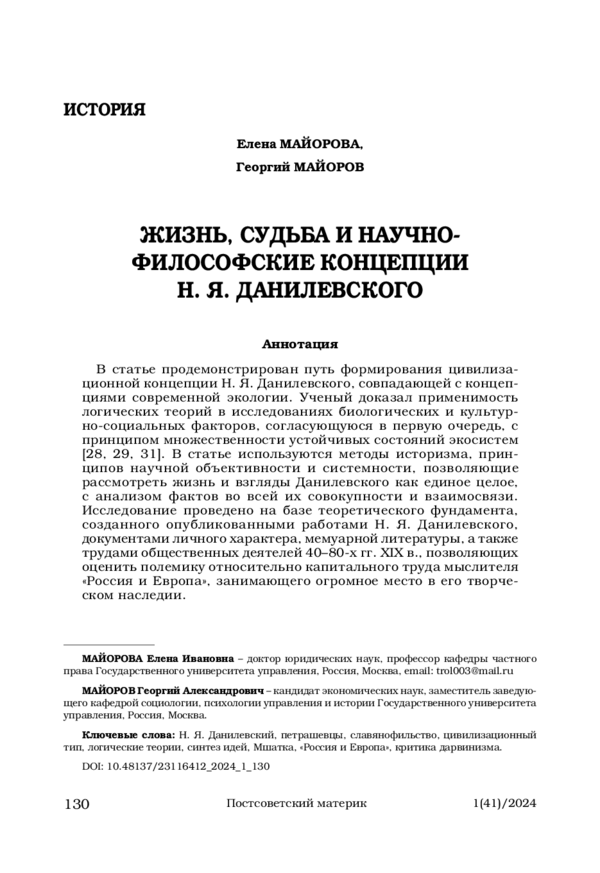 18. Данилевская О. Н., Данильченко И. Р., Тенни О. В. Жизнь Н. Я. Данилевского. Биографический очерк. Тетради по консерватизму. №3. 2020. С. 345-365.