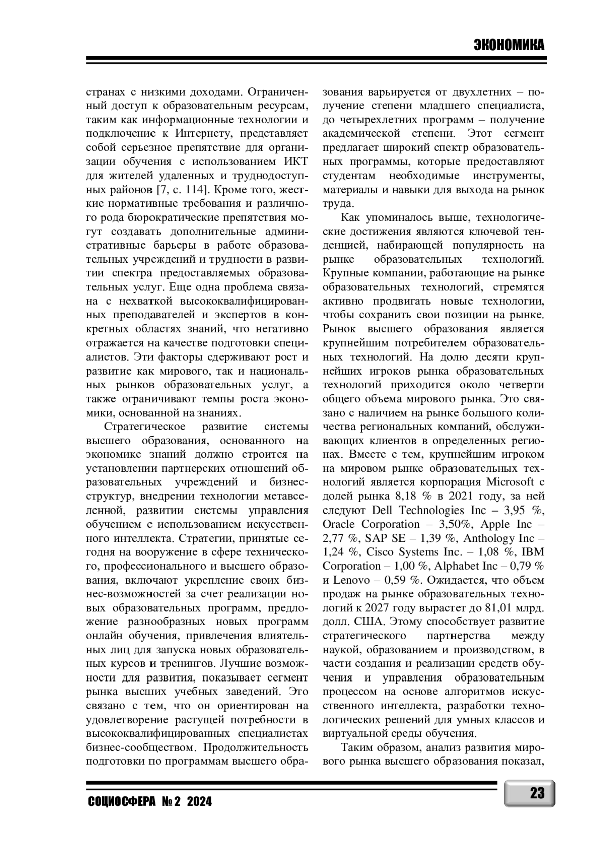 6. Educational Services Global Market Report 2024 [Electronic resource] / the business research company. - Mode of access: https://www.thebusinessresearchcompany.com/report/educational-services-global-market-report#faqs. - Date of access: 20.03.2024.