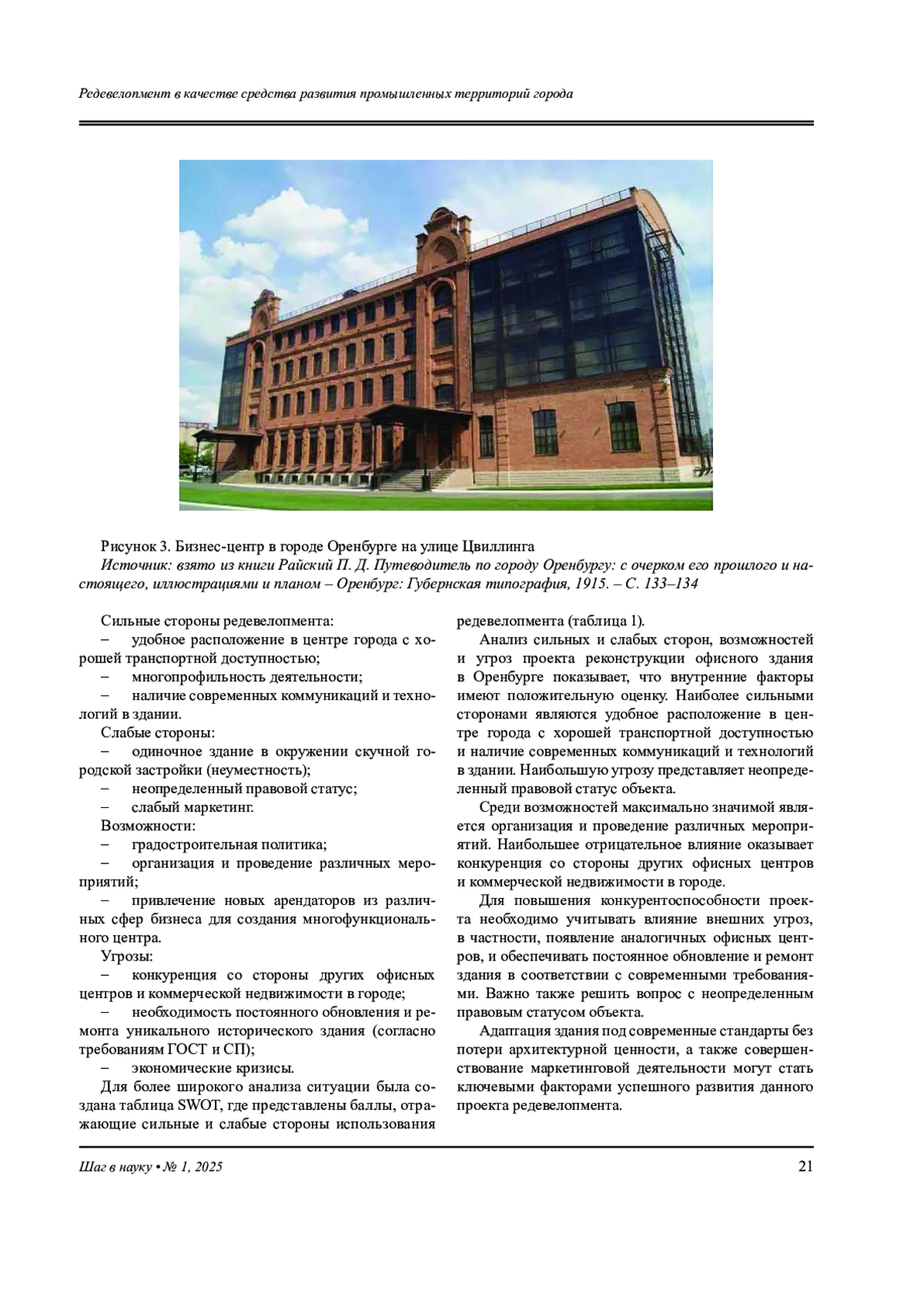 Промышленные территории в современных городах часто становятся центрами деградации и упадка. В настоящее время, заброшенные заводы, склады и фабрики являются проблемой общественного характера, так как негативно влияют на городскую среду, снижая привлекательность и качество жизни в находящихся районах. Однако грамотный редевелопмент таких территорий способен трансформировать заброшенные пространства в современные и востребованные.
