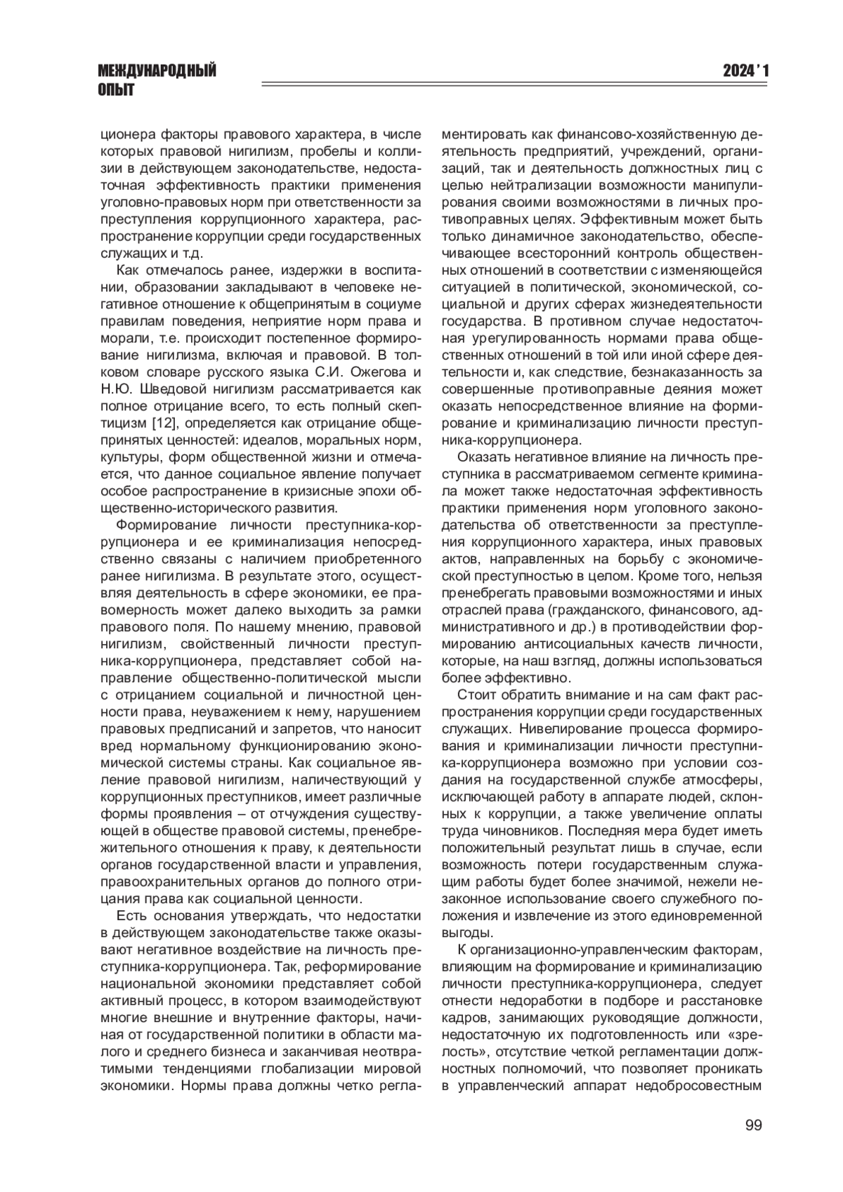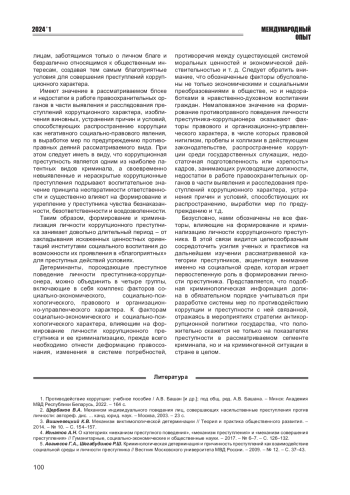 10. Капинус О.С. Криминологическое исследование личности коррупционного преступника // Журнал зарубежного законодательства и сравнительного правоведения. - 2018. - № 1. - С. 95-101. EDN: YSHOQX