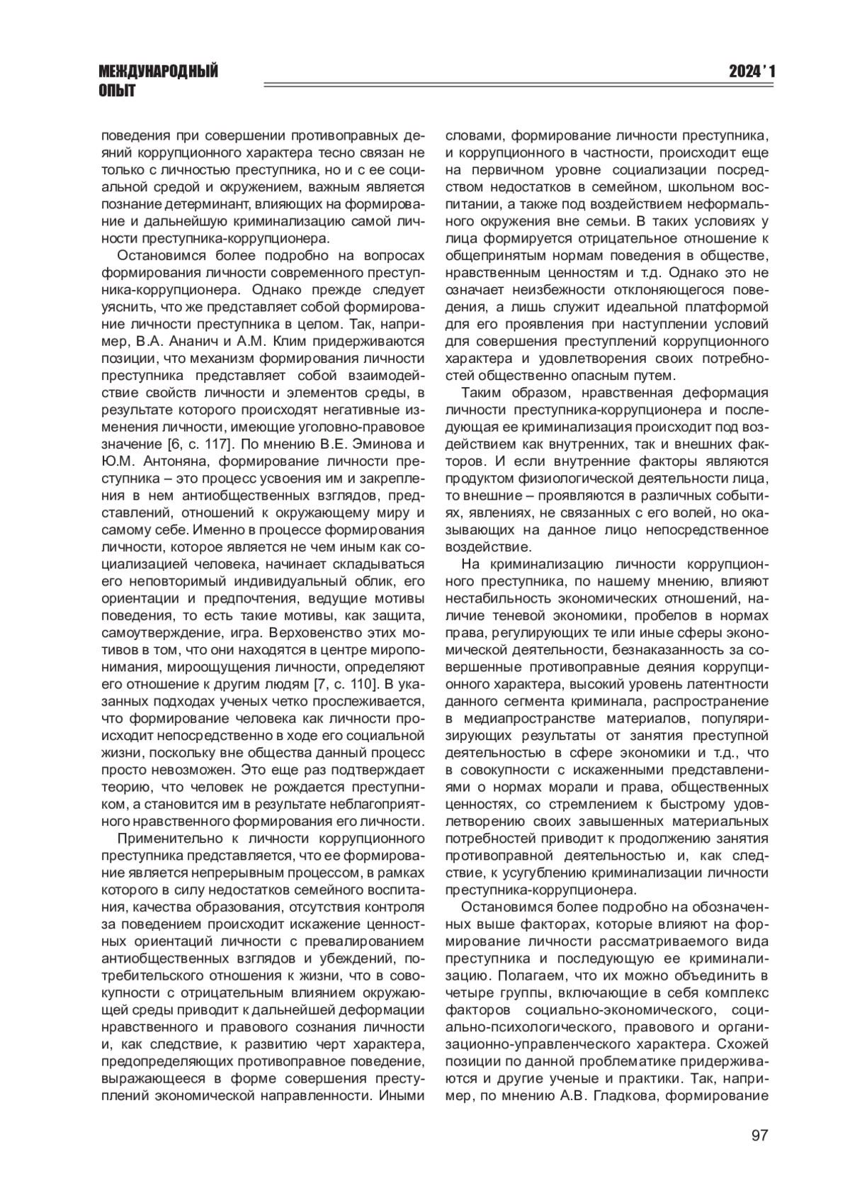 7. Эминов В.Е., Антонян Ю.М. Личность преступника и ее формирование // Актуальные проблемы российского права. - 2015. - № 1. - С. 107-112. EDN: TOTYPD