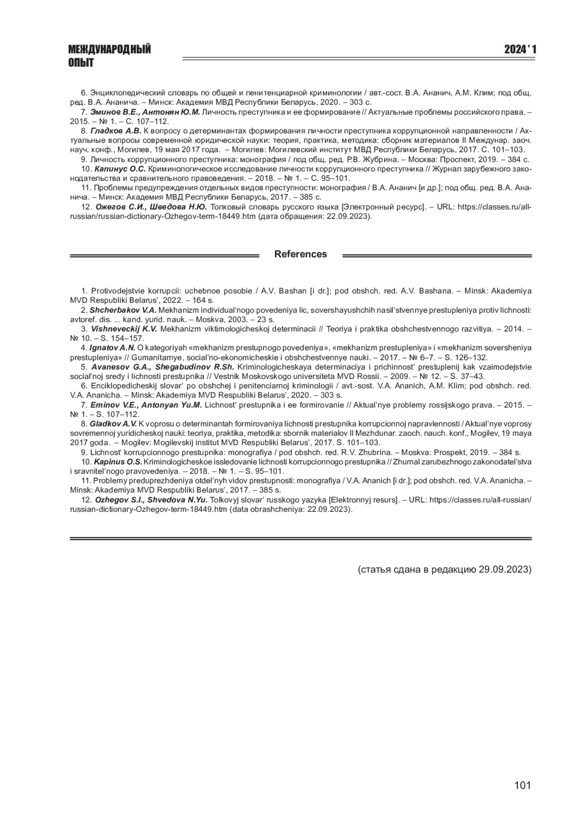 6. Энциклопедический словарь по общей и пенитенциарной криминологии / авт.-сост. В.А. Ананич, А.М. Клим; под общ. ред. В.А. Ананича. - Минск: Академия МВД Республики Беларусь, 2020. - 303 с.