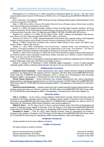 26. Филина, В. Н. (2021). Транспортное обеспечение арктических территорий. Проблемы развития территории, 25(2), 24-43. EDN: RJHNTK