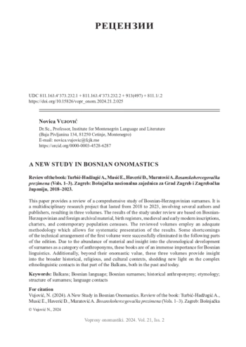 VUJOVIĆ N. НОВОЕ ИССЛЕДОВАНИЕ ПО БОСНИЙСКОЙ ОНОМАСТИКЕ // ВОПРОСЫ ОНОМАСТИКИ. 2024. Т. 21 № 2