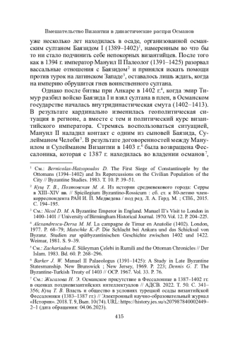 26. Жигалова Н. Э. Византийские императоры и наследники Баязида I: траектория взаимоотношений // Электронный научно-образовательный журнал “История”. 2018. Т. 9. Вып. 10 (74). [Электронный ресурс]. Доступ для зарегистрированных пользователей. URL: https://history.jes.su/s207987840002380-7-1. EDN: VVQNQJ