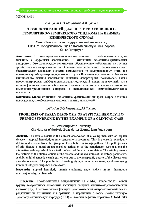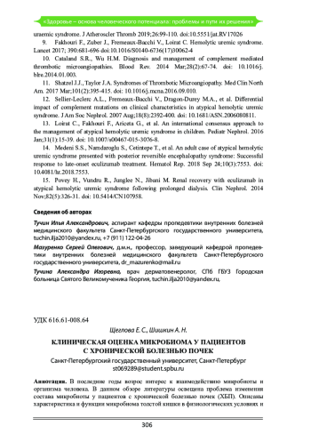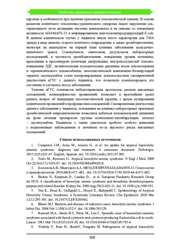 9. Fakhouri F., Zuber J., Fremeaux-Bacchi V., Loirat C. Hemolytic uremic syndrome. Lancet 2017; 390:681-696. DOI: 10.1016/S0140-6736(17)30062-4 EDN: VCPWZA