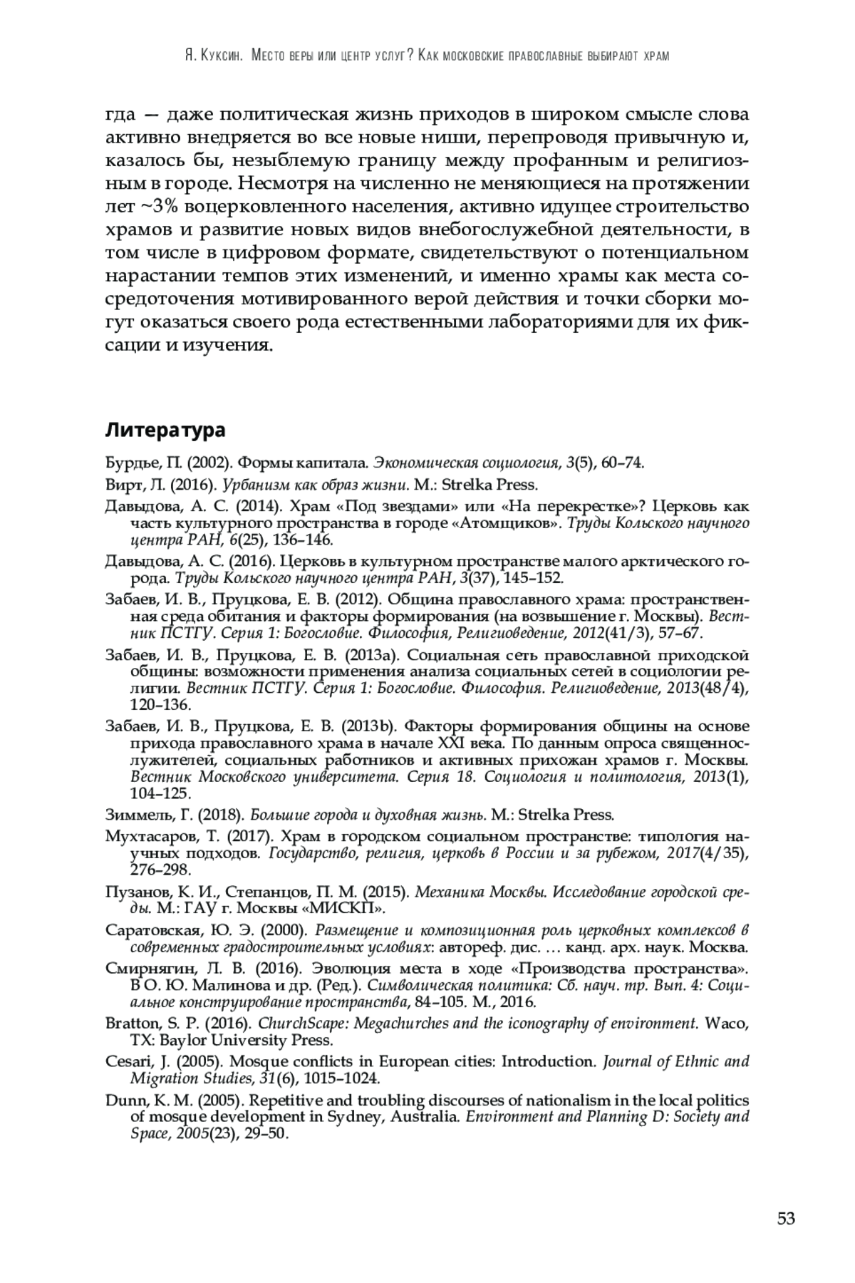 9. Мухтасаров, Т. (2017). Храм в городском социальном пространстве: типология научных подходов. Государство, религия, церковь в России и за рубежом, 2017(4/35), 276-298.