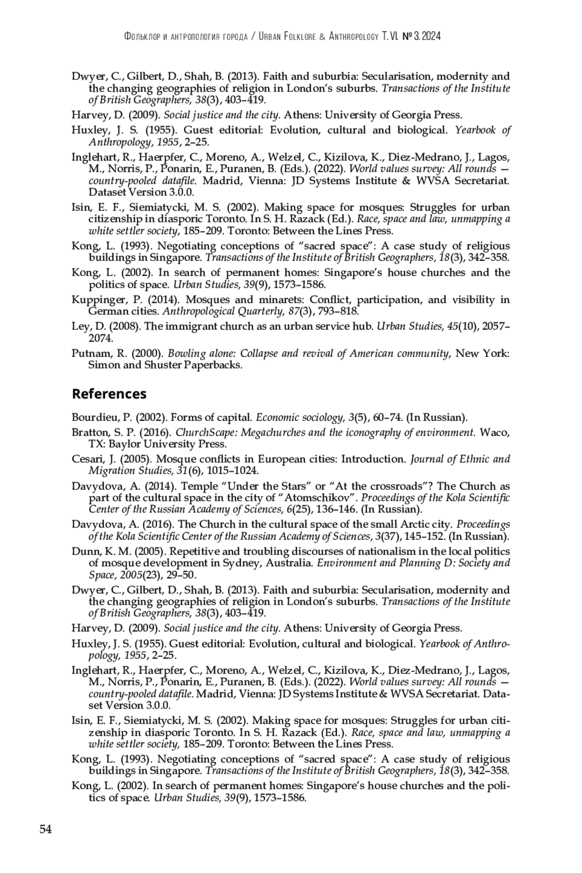 4. Давыдова, А. С. (2016). Церковь в культурном пространстве малого арктического города. Труды Кольского научного центра РАН, 3(37), 145-152.