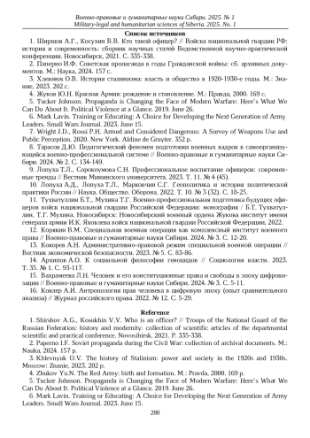 1. Ширшов А.Г., Косухин В.В. Кто такой офицер? // Войска национальной гвардии РФ: история и современность: сборник научных статей Ведомственной научно-практической конференции. Новосибирск, 2021. С. 335-338. EDN: PFFDLO