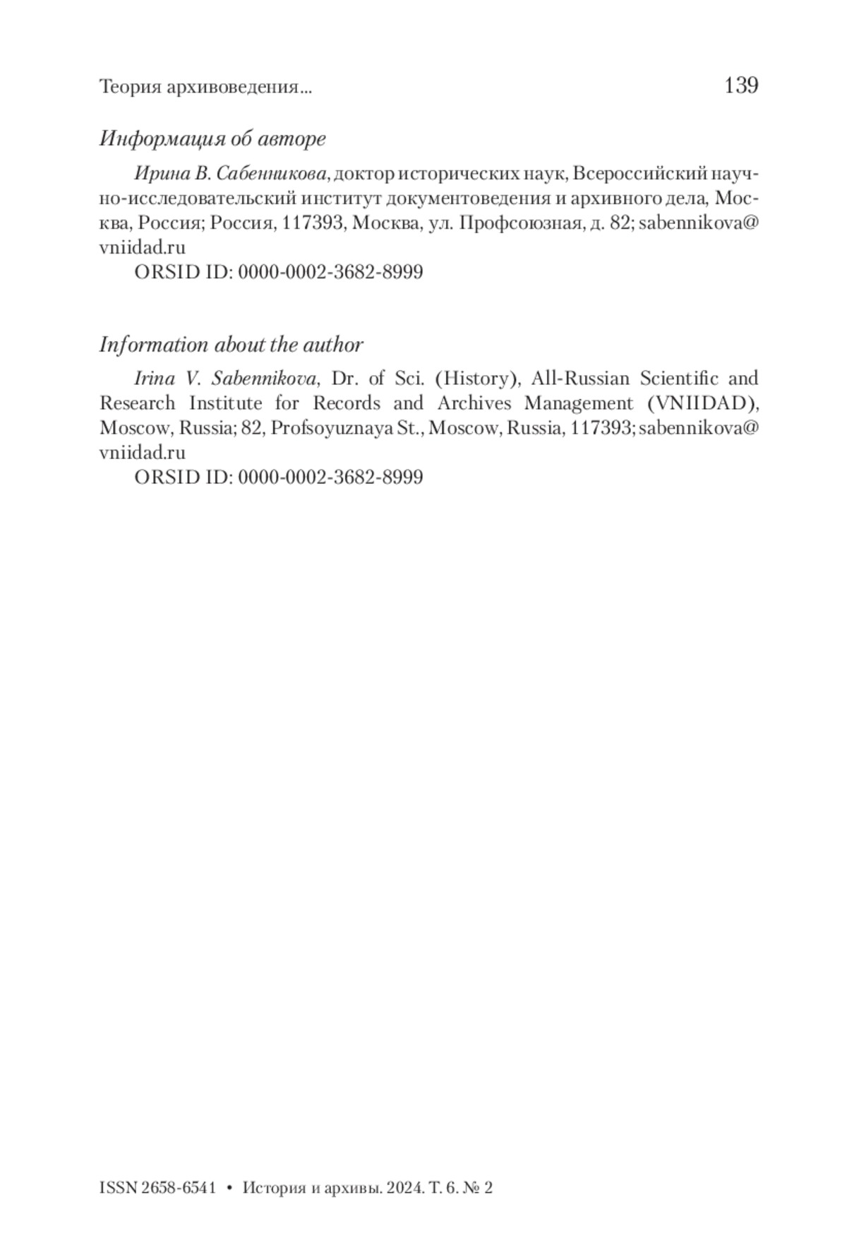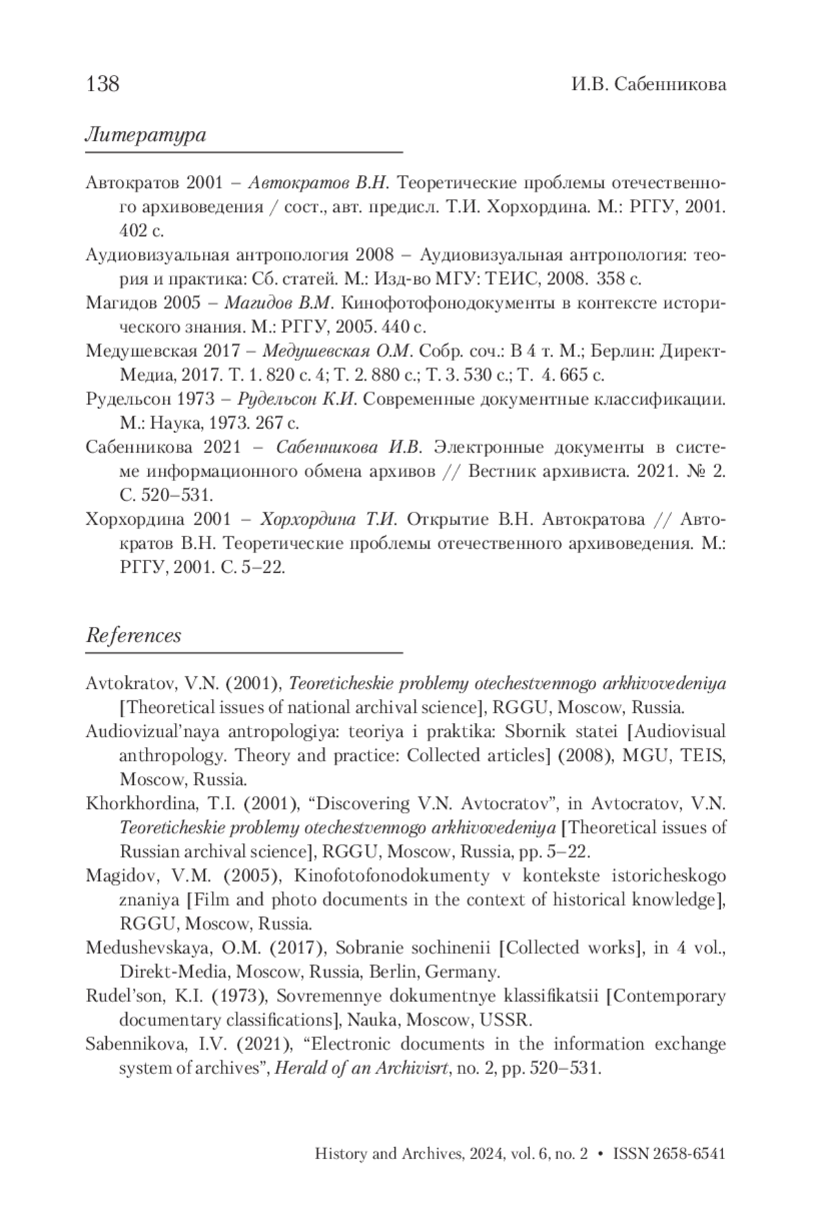 6. Сабенникова 2021 - Сабенникова И.В. Электронные документы в системе информационного обмена архивов // Вестник архивиста. 2021. № 2. С. 520-531.