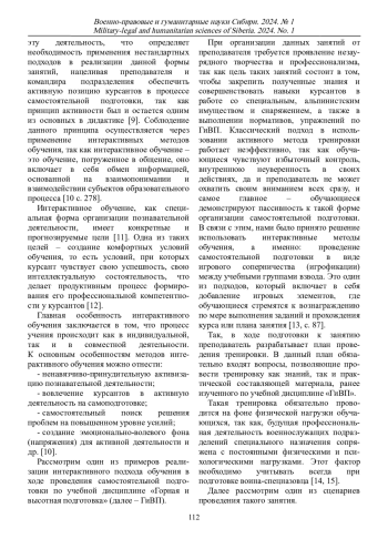 4. Игнатьев А.О. Развитие самостоятельной работы курсантов в процессе обучения в военном вузе // Вестник Санкт-Петербургского государственного университета технологии и дизайна. Серия 3: Экономические, гуманитарные и общественные науки. 2022. № 2. С. 148-162. EDN: KWRTDY