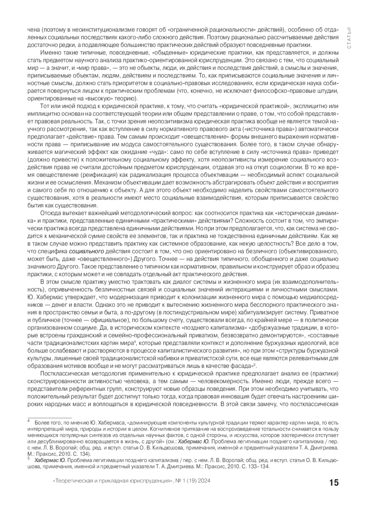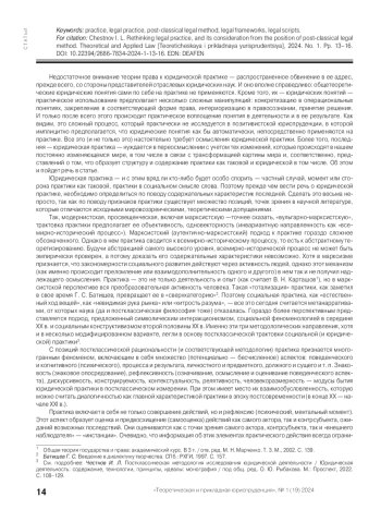 Для цитирования: Разуваев Н. В. Правопонимание в условиях смены типов научной рациональности. Теоретическая и прикладная юриспруденция. 2024;(1):4-6.