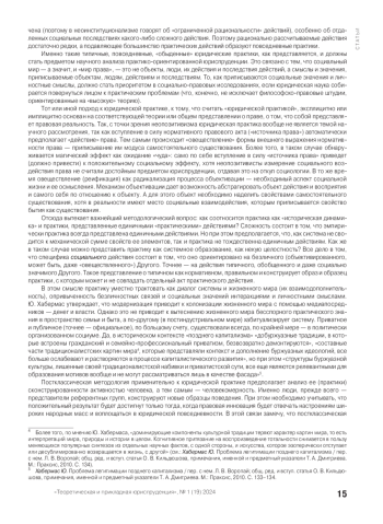В представленной статье излагается авторская позиция по вопросу юридической практики. Сегодня обнаруживается негативное явление — оторванность абстрактных, общих понятий теории права от нужд юридической практики. Поэтому обвинения со стороны представителей отраслевых юридических наук в догматичности теории права вполне оправданны. это требует переосмысления юридической практики. наиболее адекватной программой выяснения содержания юридической практики, по мнению автора, является постклассическая методология. Знаковость (знаковое опосредование), рефлексивность (означивание, осмысление и оценивание поведенческого аспекта), дискурсивность, конструируемость, контекстуальность, релятивность, человекоразмерность образуют содержание юридической практики в постклассическом измерении. акцент в постклассической научно-исследовательской программе исследования юридической практики делается на изучении юридической повседневности. ее образуют правовые фреймы и скрипты — рамки неформальных норм-практик, которые являются главными регуляторами правового поведения. наиболее перспективным подходом к их изучению является метод включенного наблюдения в рамках социокультурной антропологии права.