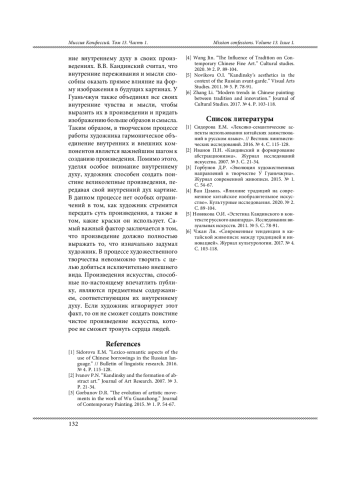 4. Ван Цзынь. “Влияние традиций на современное китайское изобразительное искусство”. Культурные исследования. 2020. № 2. С. 89-104.