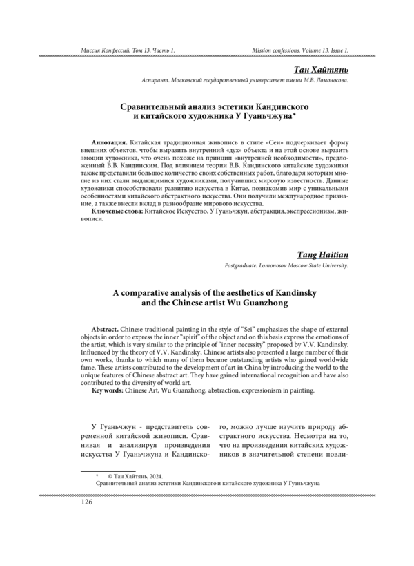 У. Гуаньчжун - представитель современной китайской живописи. Сравнивая и анализируя произведения искусства У. Гуаньчжуна и Кандинского, можно лучше изучить природу абстрактного искусства.