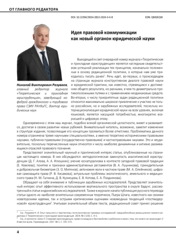 Выходящий в свет очередной номер журнала «Теоретическая и прикладная юриспруденция» является наглядным свидетельством успешной реализации тех принципов, изначально положенных в основу редакционной политики, о которых нам уже приходилось писать ранее.