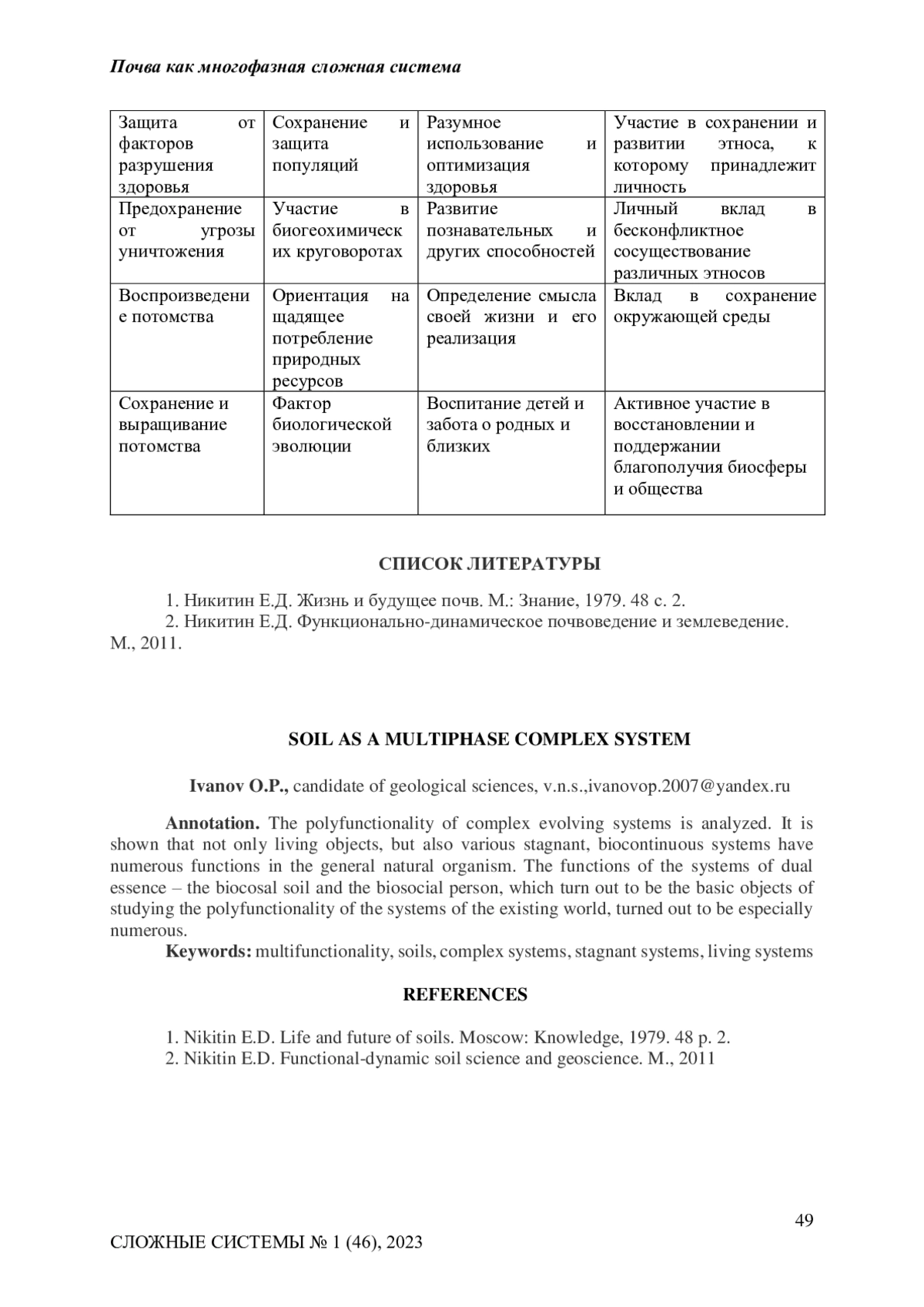 функциями в общем природном организме. Особенно многочисленными оказались функции систем двойственной сущности – биокосной почвы и биосоциального человека, которые оказываются базовыми объектами изучения полифункциональности систем существующего мира.