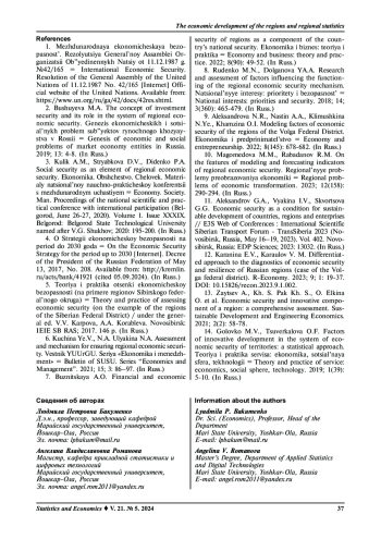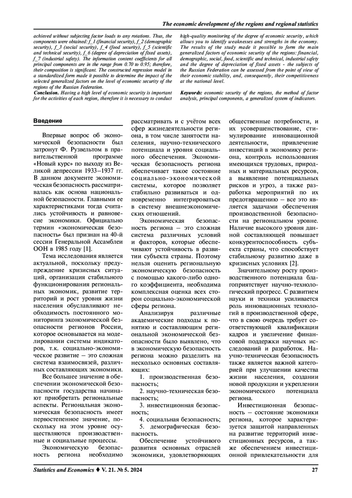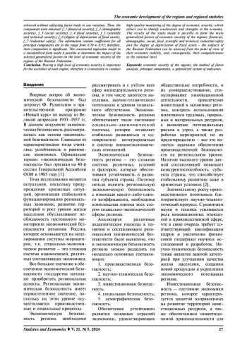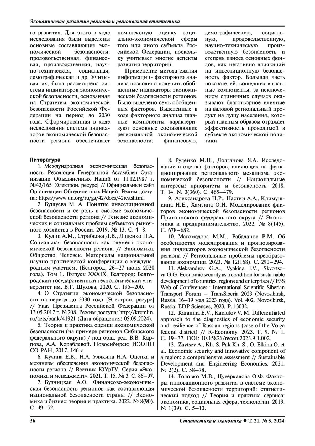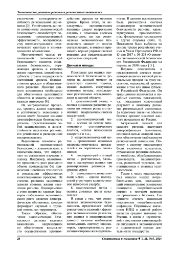Статья: ФОРМИРОВАНИЕ ОБОБЩЕННОЙ СИСТЕМЫ ИНДИКАТОРОВ ЭКОНОМИЧЕСКОЙ БЕЗОПАСНОСТИ РЕГИОНОВ (2024)