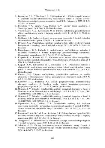 15. Пастухова Е. Я., Бельчик Т. А., Кочнева О. П. Доходы, бедность и потребительские расходы населения регионов: долгосрочные тренды и факторы влияния // Вопросы управления. 2023. № 3 (82). С. 5-18.