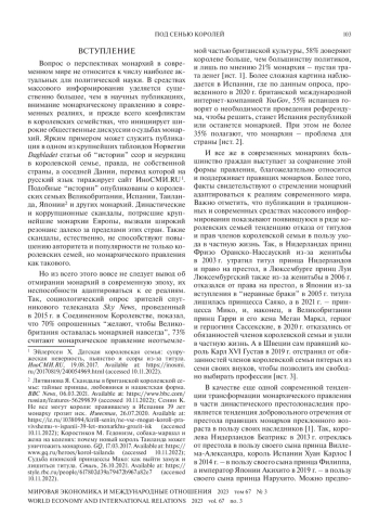 Fedorova-Kuznetsova I.V. The monarchical system of power in the modern world and its features. Obshhestvo: politika, jekonomika, pravo, 2019, no. 9 (74), pp. 35-38. (In Russ.) Available at: https://cyberleninka.ru/article/n/monarhicheskaya-sistema-vlasti-v-sovremennom-mire-i-ee-osobennosti/viewer (accessed 30.11.2022).