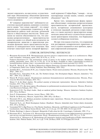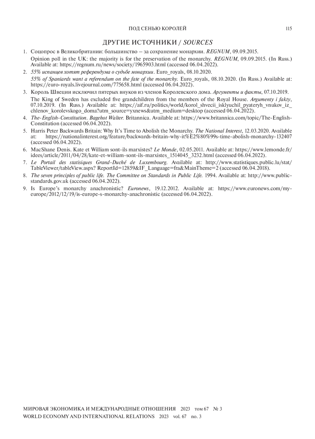 1. Федорова-Кузнецова И.В. Монархическая система власти в современном мире и ее особенности. Общество: политика, экономика, право, 2019, № 9 (74), сс. 35-38. EDN: YWDJXI