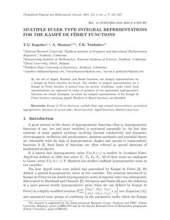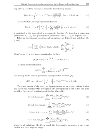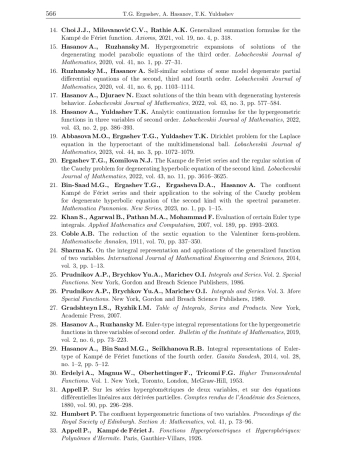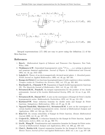 4. Kampe de F’eriet J. Les fonctions hyperg’eom’etriques d’ordre sup’erieur a’ deux variables.Comptes rendus de l’Acad’emie des Sciences, 1921, vol. 173, pp. 401-404.