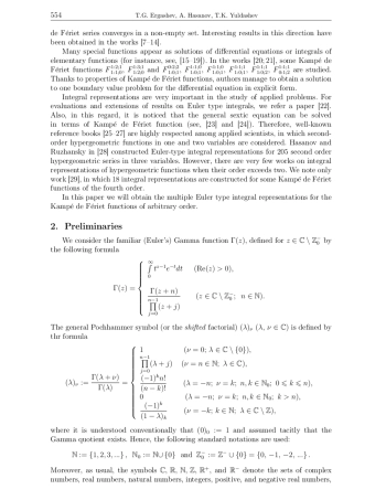 33. Appell P., Kamp’e de F’eriet J. Fonctions Hyperg’eometriques et Hypersph’eriques: Polynoˆmes d’Hermite. Paris, Gauthier-Villars, 1926. Multiple Euler type integral representations for the Kamp’e de F’eriet functions 567.