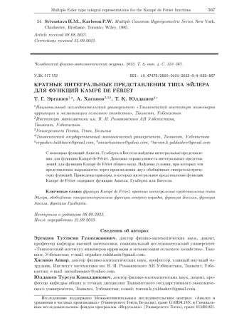 34. Srivastava H.M., Karlsson P.W. Multiple Gaussian Hypergeometric Series. New York, Chichester, Brisbane, Toronto, Wiley, 1985.