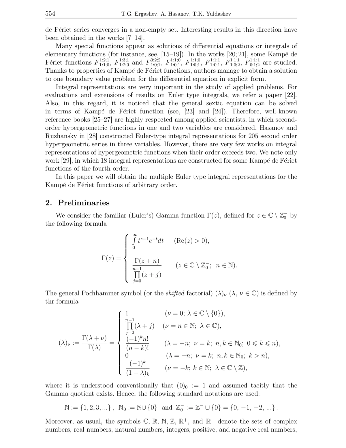 29. Hasanov A., Bin Saad M.G., Seilkhanova R.B.Integral representations of Eulertype of Kamp’e de F’eriet functions of the fourth order. Ganita Sandesh, 2014, vol. 28, no. 1-2, pp. 5-12.