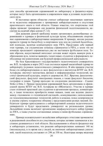 Ключевые фразы: ПЕДАГОГИЧЕСКИЙ ВУЗ, киберспорт, соревновательные дисциплины, фиджитал-игры, студенты, искусственный интеллект, КОМПЬЮТЕРНЫЕ ИГРЫ