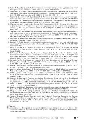 8. Гусев А. В. Перспективы нейронных сетей и глубокого машинного обучения в создании решений для здравоохранения // Врач и информационные технологии. 2017. № 3. С. 92-105. EDN: ZGYVPD