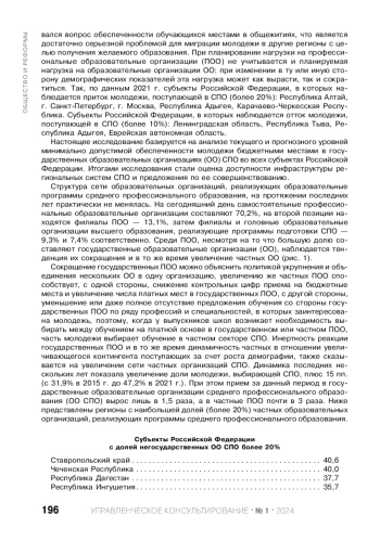 7. Baykov N. M., Voronkin M. V. Networking of secondary vocational education organizations in the region: opportunities and prospects // Power and Administration in the East of Russia. 2022. N 1 (98). P. 76-90. DOI: 10.22394/1818-4049-2022-98-1-76-9 EDN: EQKPJV