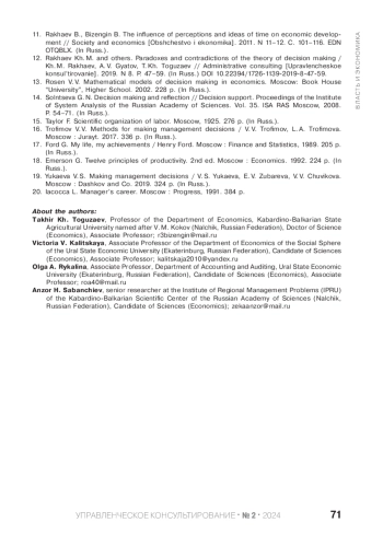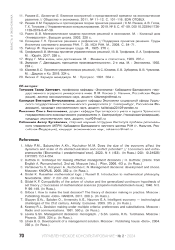 12. Рахаев Х. М. Парадоксы и противоречия теории принятия решений / Х. М. Рахаев, А. В. Гятов, Т. Х. Тогузаев // Управленческое консультирование. 2019. № 8. С. 47-59. DOI: 10.22394/17261139-2019-8-47-59 EDN: EIVXMB