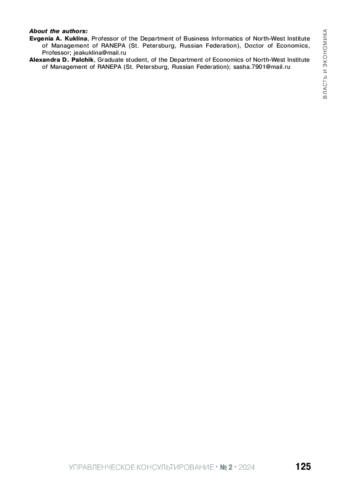 1. Володина А. О., Траченко М. Б. Доходность ESG-инвестирования на развитых и развивающихся рынках с учетом временного горизонта // Финансовый журнал. 2023. № 2. С. 59-73. EDN: FGYNYO
