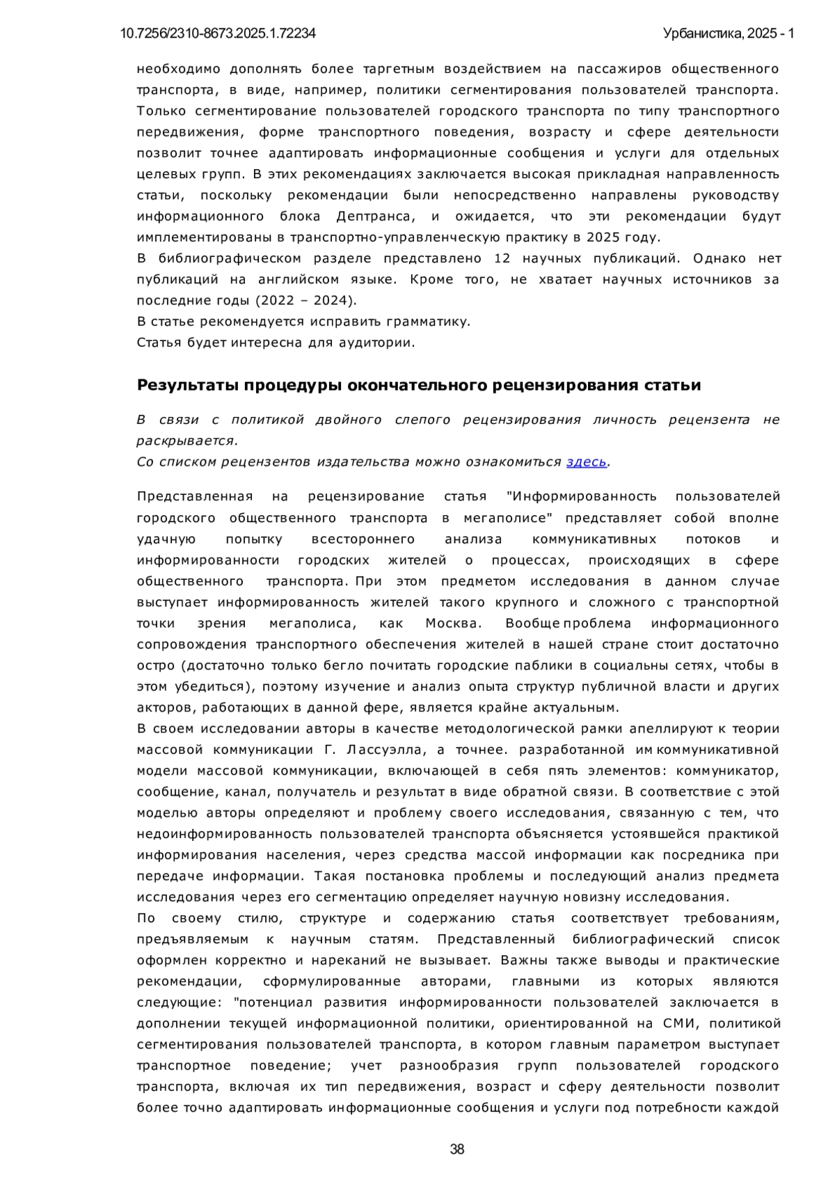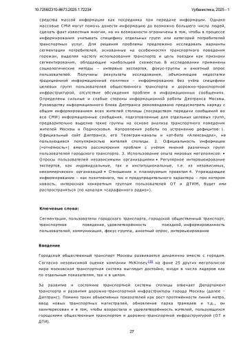 Статья: Информированность пользователей городского общественного транспорта в мегаполисе (2025)
