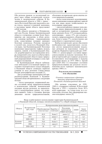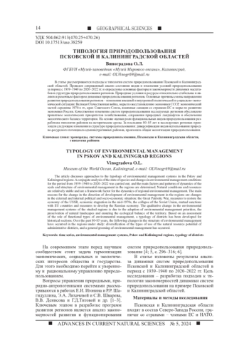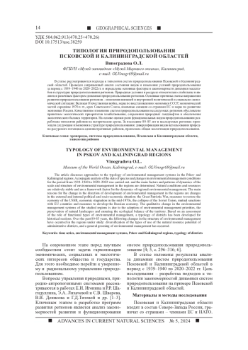 Статья: ТИПОЛОГИЯ ПРИРОДОПОЛЬЗОВАНИЯ ПСКОВСКОЙ И КАЛИНИНГРАДСКОЙ ОБЛАСТЕЙ (2024)