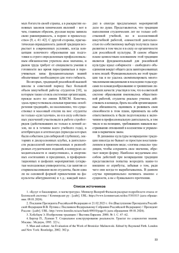 Программные установки современного этапа реформирования российской системы высшего образования, начавшегося после объявления об отказе от интеграции в Болонскую систему в качестве основного ориентира развития [1], включают активную акцентировку необходимости использования для создания собственной уникальной системы образования, наряду с приобретенным в последние десятилетия международным опытом, национальных традиций высшей школы, «всего лучшего, что было в советской системе образования» [2].