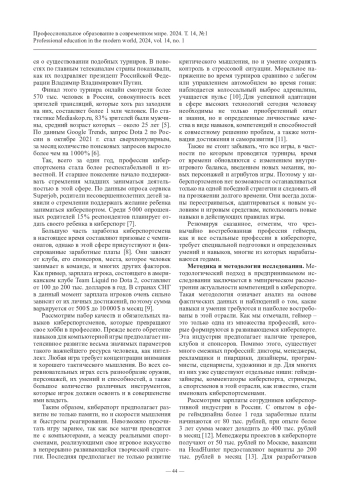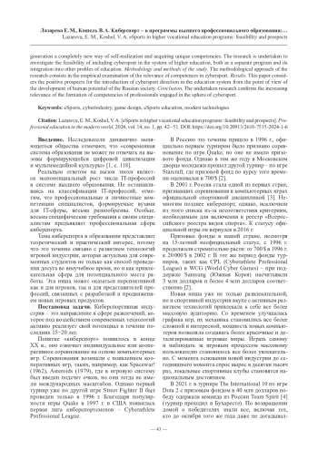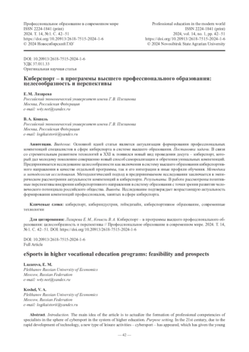 Введение. Основной идеей статьи является актуализация формирования профессиональных компетенций специалистов в сфере киберспорта в системе высшего образования.