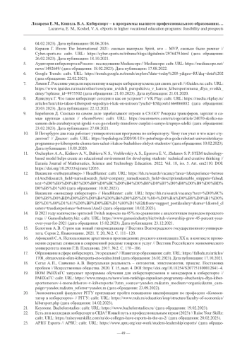 10. В Петербурге два года работает университетская программа по киберспорту. Чему там учат и что ждет студентов? // Диалог: сайт. URL: https://topdialog.ru/2020/05/18/v-peterburge-dva-goda-rabotaet-universitetskaya-programma-po-kibersportu-chemu-tam-uchat-i-kakoe-budushhee-zhdyot-studentov (дата обращения: 10.02.2023). Дата публикации: 18.05.2020.