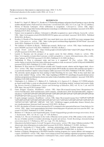 7. Лямин Г. Россияне увидели перспективу в карьере киберспортсмена для своих детей // http://iGuides.ru: сайт. URL: https://www.iguides.ru/main/other/rossiyane_uvideli_perspektivu_v_karere_kibersportsmena_dlya_svoikh_detey/?sphrase_id=9975502 (дата обращения: 21.03.2023). Дата публикации: 21.01.2020.