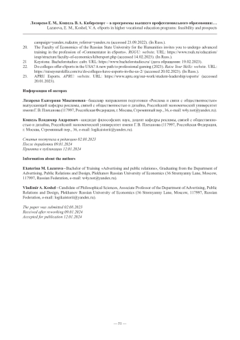 20. Экономический факультет РГГУ приглашает пройти повышение квалификации по профессии «Комментатор в киберспорте» // РГГУ: сайт. URL: https://www.rsuh.ru/education/ieup/structure/faculty-of-economics/kibersport.php (дата обращения: 14.02.2023).