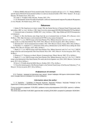 6. Потемкин И. А., Колпаков П. А. Защита и охрана железнодорожной структуры силами НКВД в годы Великой Отечественной войны. Москва: Проспект, 2023. 208 с. EDN: QZPHVF