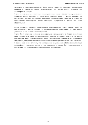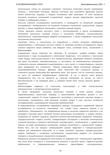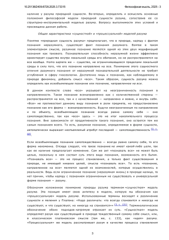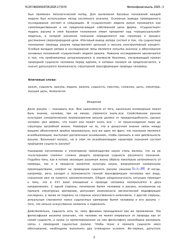 МАМАРАСУЛОВ А. Р. ОСНОВНЫЕ ПОЛОЖЕНИЯ «СУЩНОСТНОЙ» МОДЕЛИ РАЗУМА // ФИЛОСОФСКАЯ МЫСЛЬ. 2025. № 3