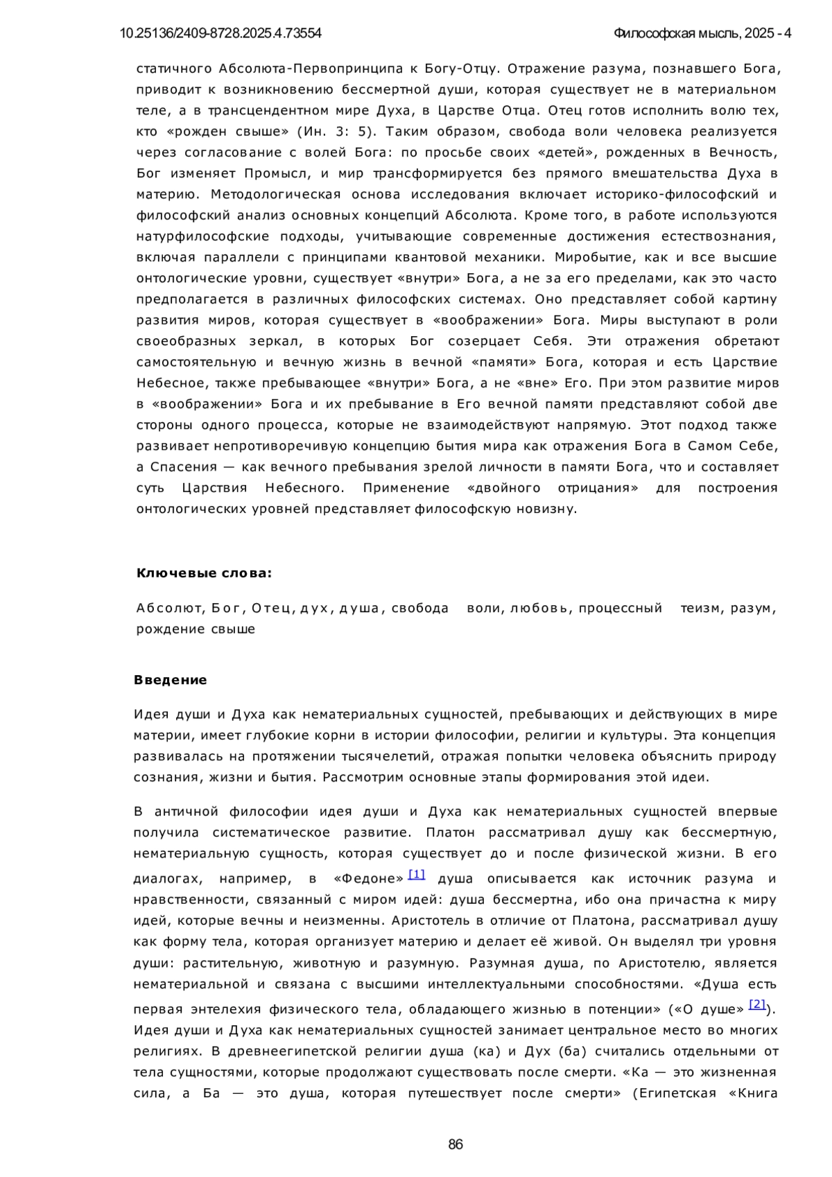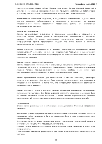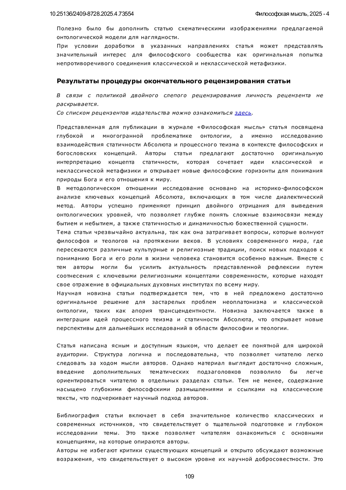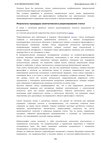 ЧЕКРЫГИН О. В., НАДЕИНА Д. А. СТАТИЧНОСТЬ АБСОЛЮТА В СОЧЕТАНИИ С ПРОЦЕССНЫМ ТЕИЗМОМ БОГА-ОТЦА В НОВОЙ ОНТОЛОГИЧЕСКОЙ ПЕРСПЕКТИВЕ // ФИЛОСОФСКАЯ МЫСЛЬ. 2025. № 4