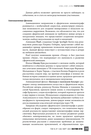 Статья: Сферический кинематограф: трансформация киноязыка в условиях виртуальной реальности (2024)